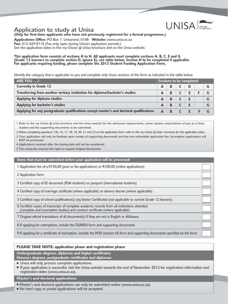 My Choice Unisa 2013 Application Form Academic Degree